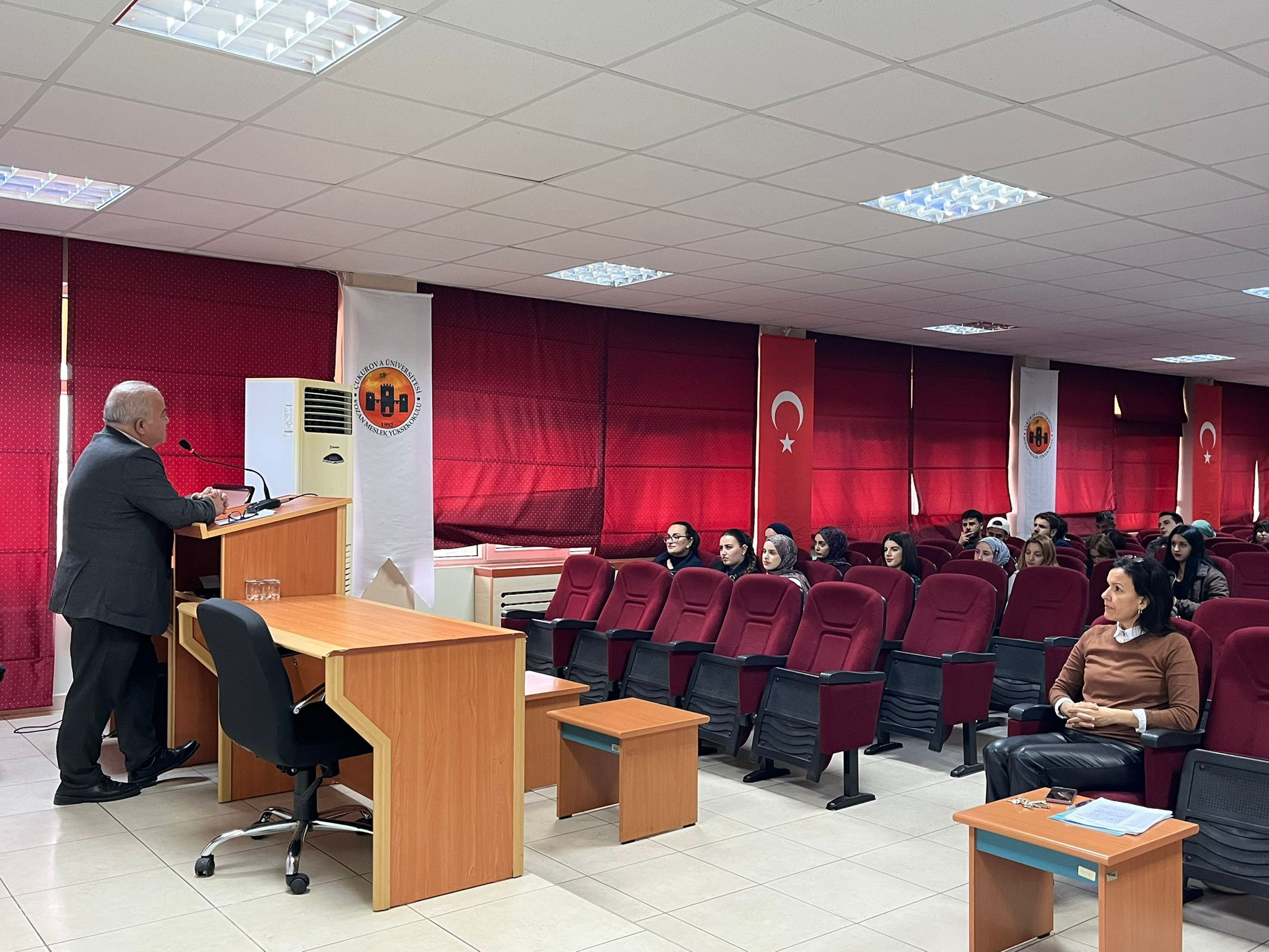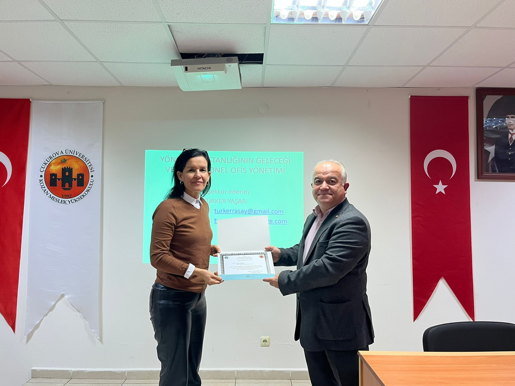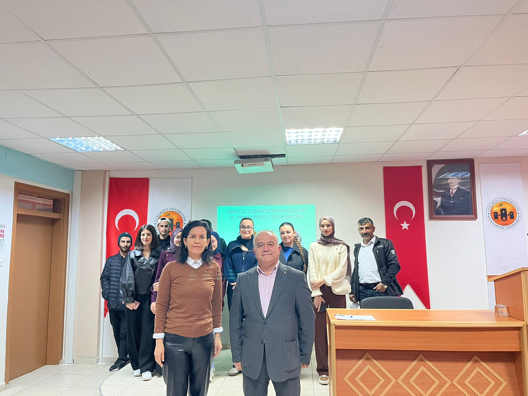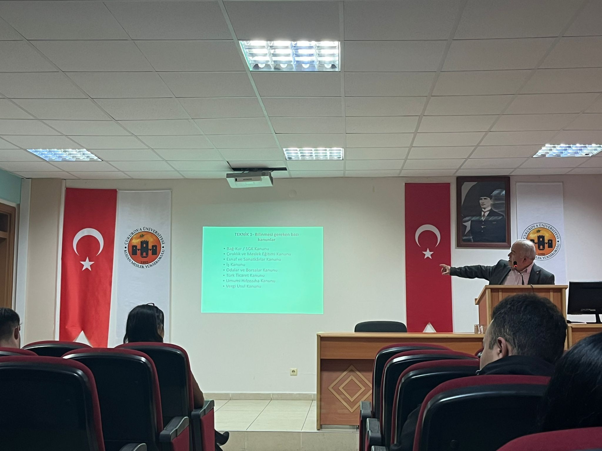Mesleki Gelişim Seminerleri kapsamında düzenlenen “Yönetici Asistanlığının Geleceği ve Profesyonel Ofis Yönetimi” konulu seminerimiz 08.12.2025 Pazartesi günü saat 13.00’te Kozan Ticaret Borsası Genel Sekreteri Türker YAŞAR’ın katılımlarıyla Yüksekokulumuz Konferans Salonunda gerçekleştirildi.