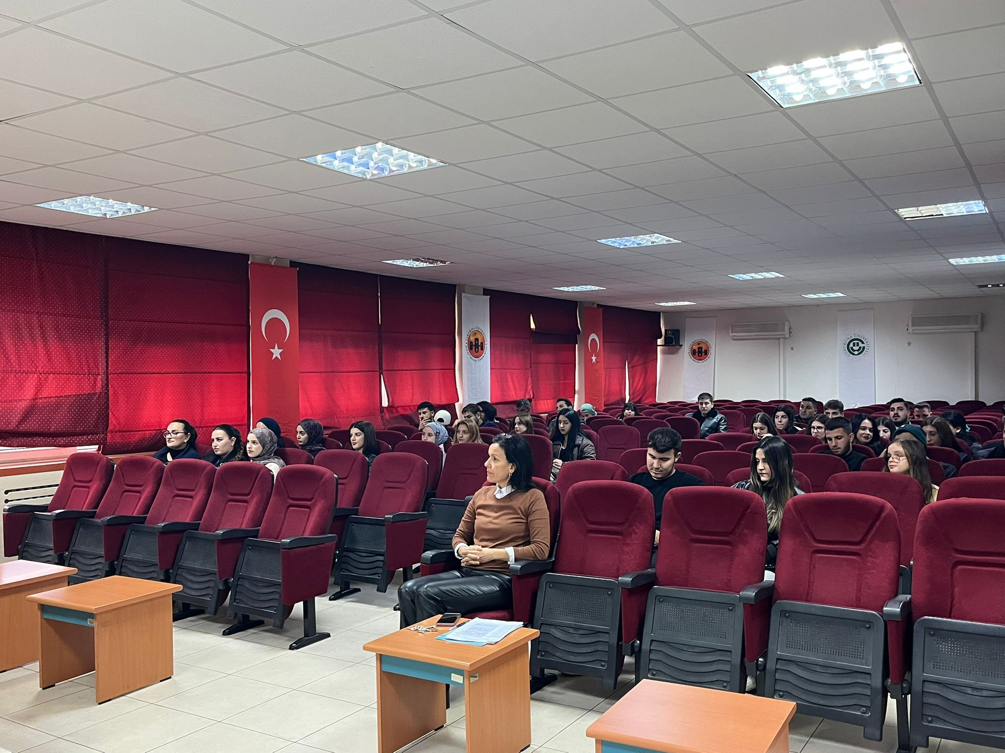 Seminerde konuşmacımız, öğrencilerimizle engin tecrübelerini paylaştı. Bunun yanında alanlarına yönelik olarak; iş dünyasında güvenin temelini oluşturan meslek etiğinin neden vazgeçilmez olduğunu, bir yönetici asistanının kuruma kattığı görünmez fakat çok güçlü değerlerini, kariyer yolculuğuna başlarken dikkat edilmesi gereken adımları, değişen iş dünyasında teknolojinin ve veri yönetiminin önemini kendi alanında deneyimli bir yöneticiden dinleme fırsatı buldular.
